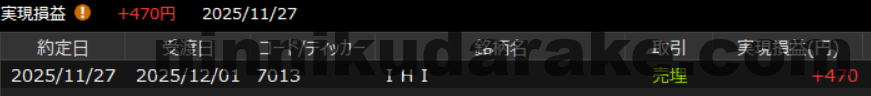 IHIはもう数ティック上で逆指値をしたかったが、発注ミスで即約定になった