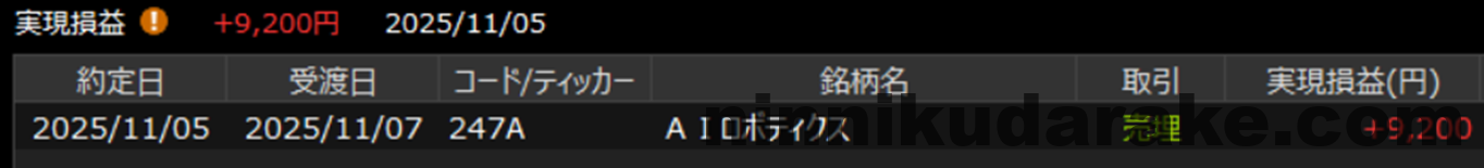 が、後場寄りから強い上昇で、247A AIロボティクスは売ってしまいました