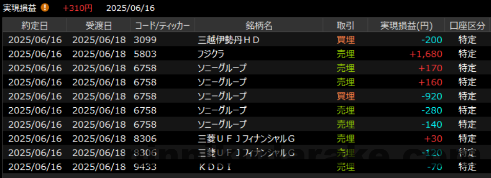6758ソニーGで、返済売りが残ってしまったと思って追加注文したら新規売りになってしまった