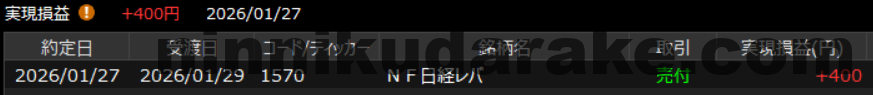 2026/1/27 昨日のレバからの利確