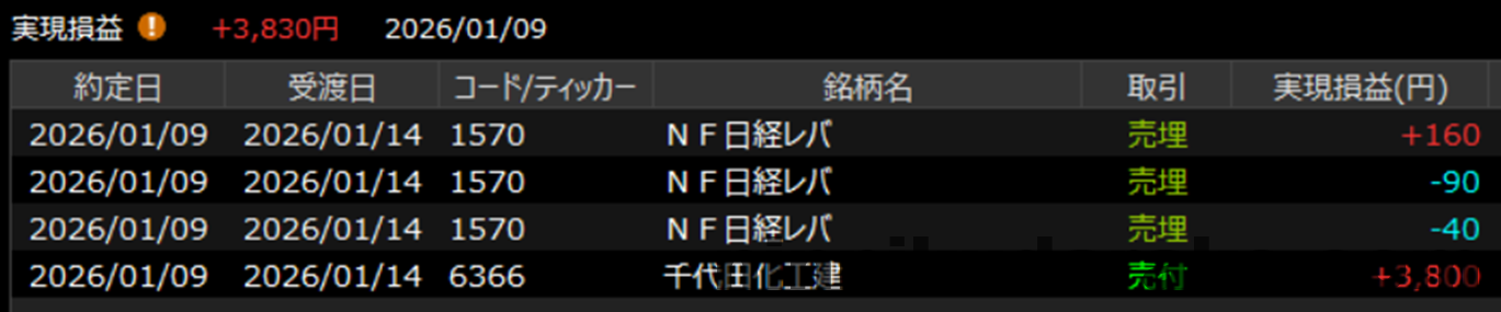千代田化工建は孕み線の後の下落だったので利確した