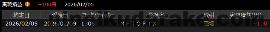 1306 NFTOPIX、現引した