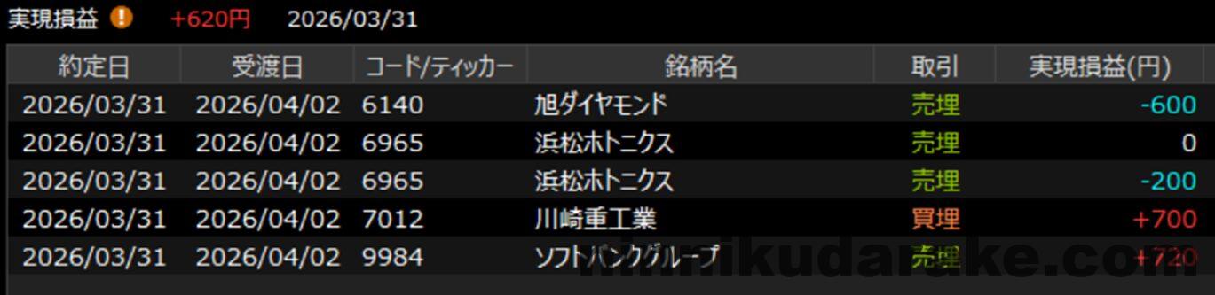 2026/3/31 エントリー回数だけ増えた