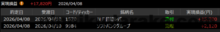 1570 NF日経レバ、売り、3株、52600円